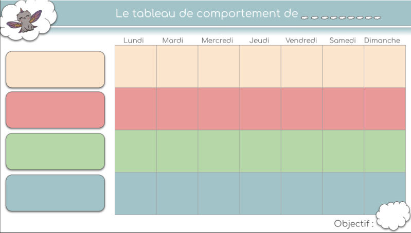 Le tableau de comportement est un outil régulièrement utilisé dans la méthode Barkley. Il permet aux enfants d'avancer dans leur développement tout en gagnant confiance en eux. Les objectifs sont les suivants :