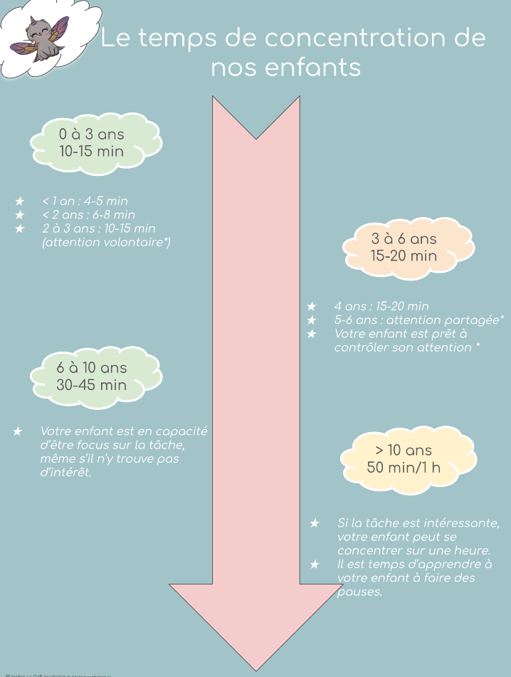 concentration évolue avec l’âge. Le nourrisson se concentre très