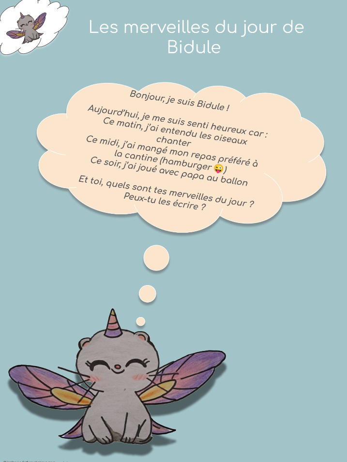 Bidule, vous propose d’ajouter ce petit exercice à votre rituel du soir. Il permettra à votre enfant de relire les moments de joie de sa journée. Cela va lui permettre d’apprendre à se concentrer sur les moments positifs de sa journée, mais cela va également lui permettre d’améliorer son sommeil.